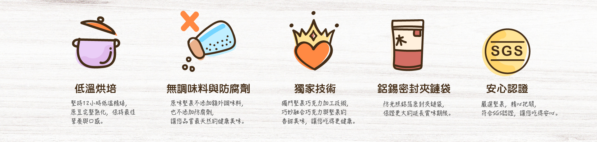 讓您吃得更安心、買的更放心,您的零嘴我把關,符合SGS認證。「木瓜村」嚴選堅果,粒粒精心把關,將最天然的堅果,經過長時低溫烘培的工法讓堅果裡外熟化,去除雜氣雜味,將產品精製純化,提供給消費者最乾淨的產品及最天然的原味享受。